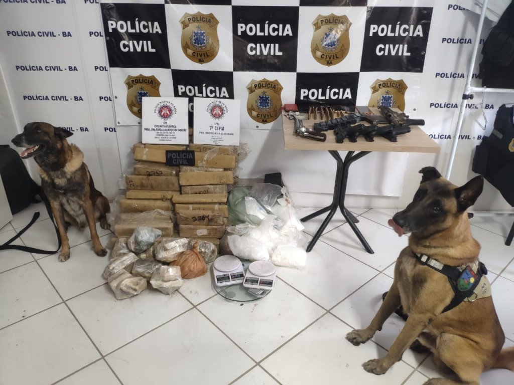 Cento e cinquenta quilos de maconha, cocaína e crack, além de uma submetralhadora, quatro pistolas e um revólver foram localizados enterrados, na cidade de Eunápolis, no Extremo Sul baiano, nesta segunda-feira (22). As apreensões fazem parte da segunda fase da 'Operação Nero', ação conjunta das polícias Civil e Militar.